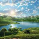 突然“横石洞开,梁道平正”。于是昙猷大师过桥来到一处殿宇宏敞、宝塔瑰奇的地方。但见香霭飘拂,金鸟飞翔,在一片梵呗声中,只见五百位梵僧或坐,或卧,游戏习定于林间石上,瞬息万变,令人眼目应接不暇。