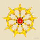 五方五智虽大日如来一身所具,但为利益众生,故生出四方四佛乃至成为一大曼荼罗、周遍法界。是中以“地、水、火、风、空”五大圆满一切功 德,故名五轮。